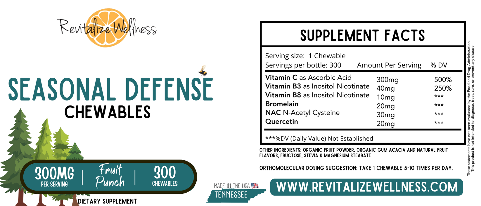 Please note: Chewables offer a highly concentrated flavor due to their size. For those seeking greater customization, we recommend our Seasonal Defense Powder, which allows you to adjust the flavor by adding more or less water to your liking.