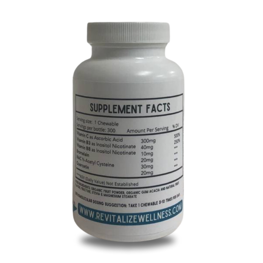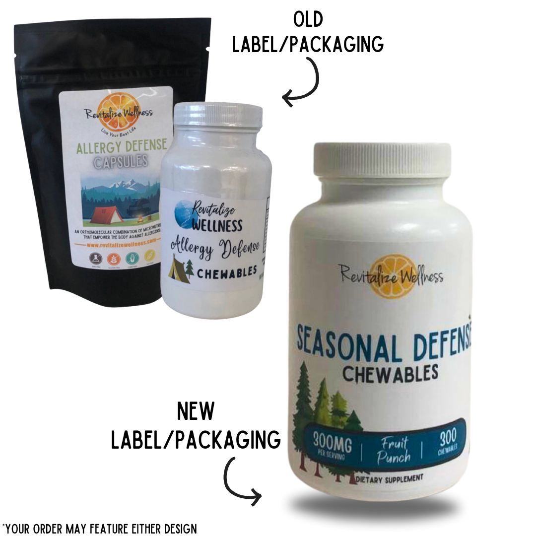 Our best-selling Seasonal Defense (formerly Allergy Defense) is now available in a chewable form! Revitalize Wellness has harnessed scientific research and case study insights to create a product that supports your body during allergy season. This blend contains essential micronutrients that help ease the discomfort of seasonal allergies and build a natural immune response. Enjoy the convenience of allergy relief you can take on the go.