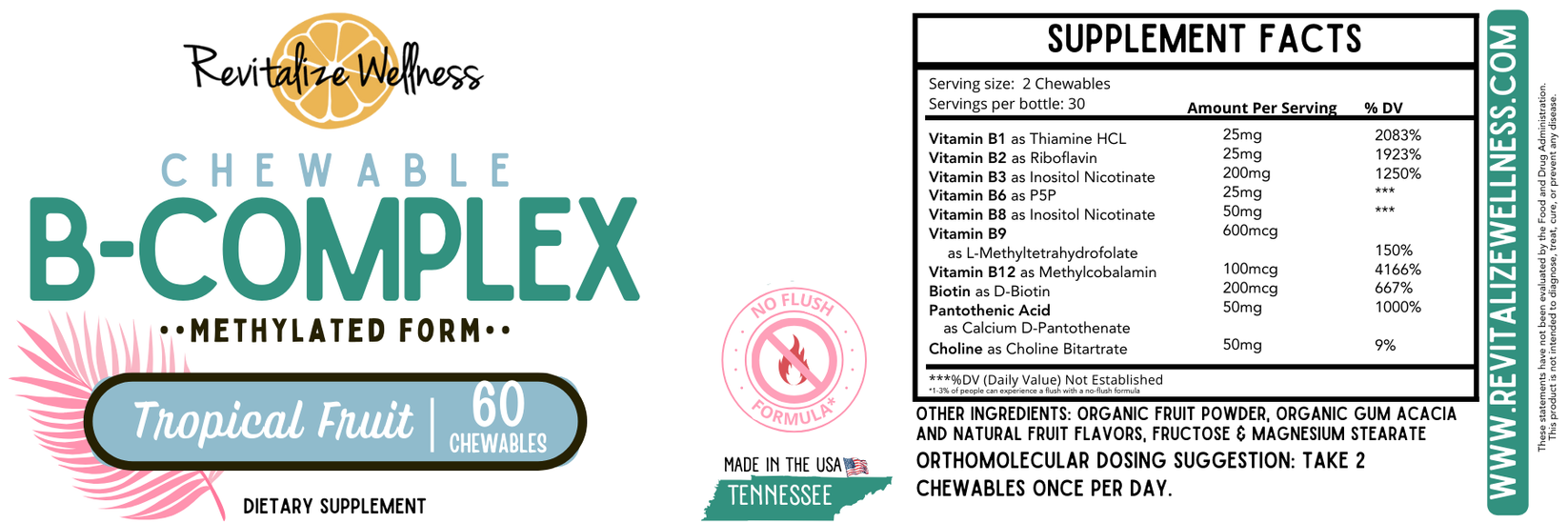 Ward off illness and boost your energy with our powerful B-Complex Chewables! This specially formulated blend of essential B vitamins supports immune health by raising leukocytes, making it tough for pathogens to take hold. B vitamins are critical for blood cell creation, energy production, and enzyme function, keeping your body functioning at its best. Safe for those with MTHFR mutations, our B-Complex features highly absorbable forms of each vitamin, plus a delicious tropical fruit flavor in every chewable.