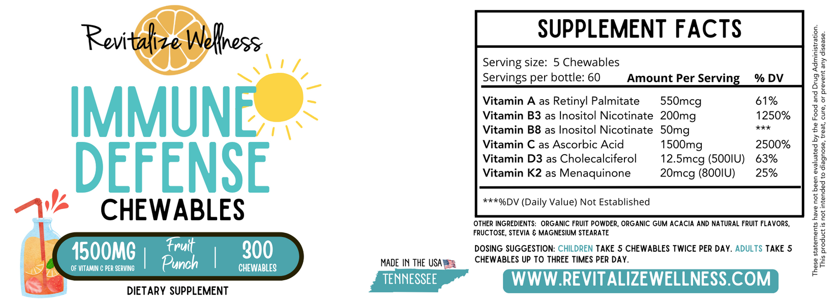 Comprehensive Support for Winter Wellness! During the winter months, it’s nearly impossible for most people to maintain optimal Vitamin D levels due to limited sunlight. That's why we created Immune Defense Chewables—a delicious chewable packed with Vitamin D3, Vitamin A, Vitamin K2, and essential micronutrients to support your immune health. This carefully crafted blend ensures that Vitamin D is paired with Vitamin A, which helps prevent toxicity, and Vitamin K, which balances calcium for enhanced heart and bone health.