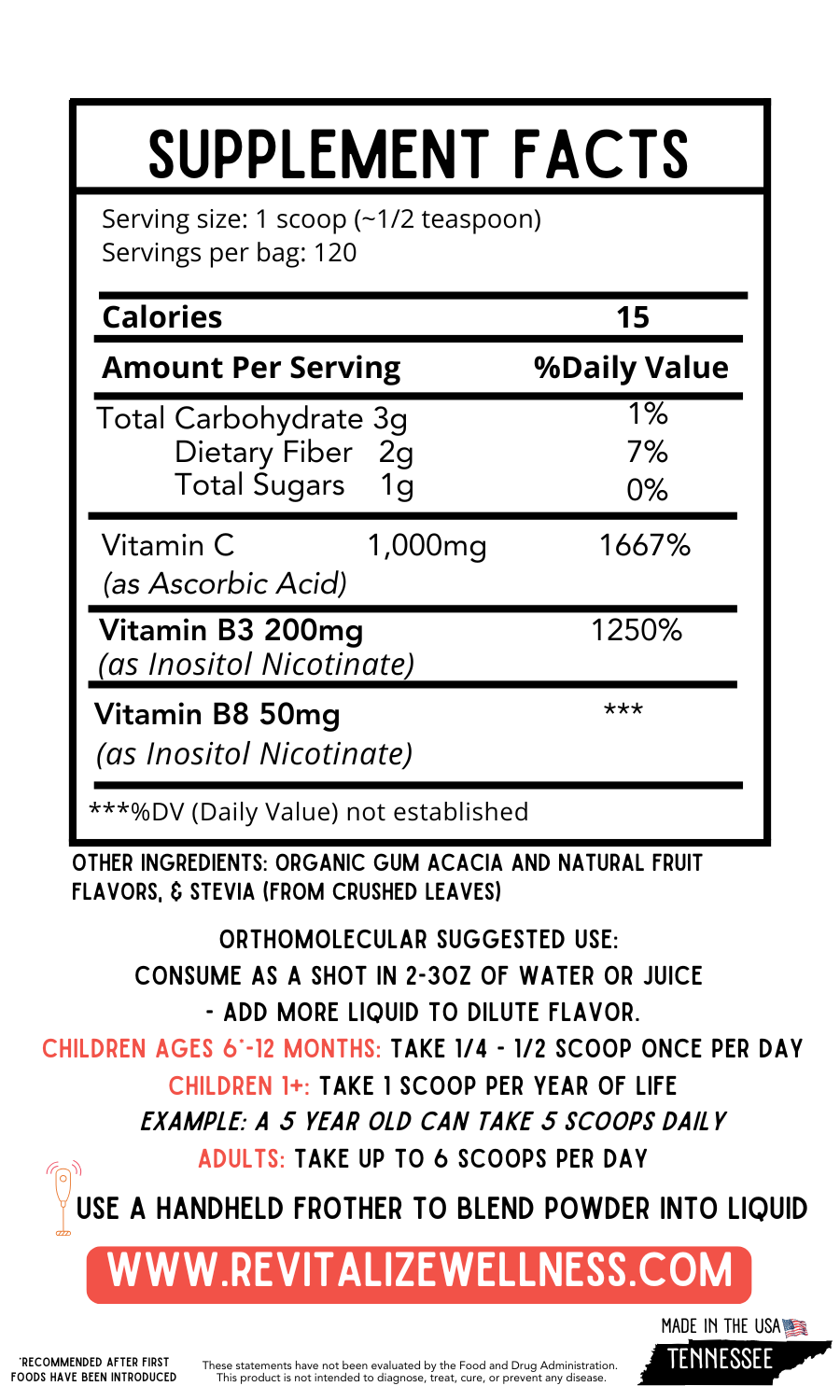 Kids Defense Powder includes enough Vitamin C to support a healthy, young immune system. And two other ingredients to help it work even better!