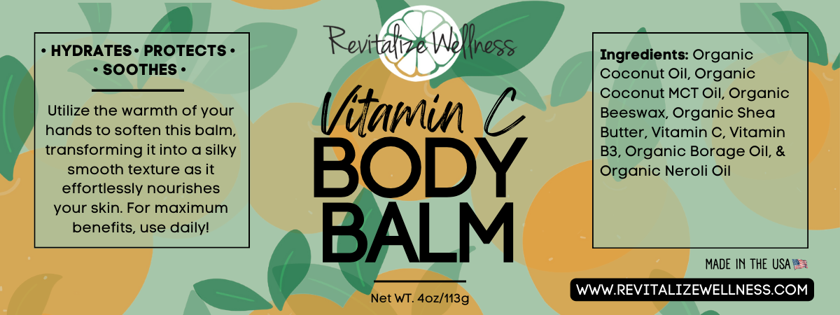 Indulge your skin in the luxurious feel and therapeutic benefits of our Vitamin C enhanced Body Balm! This balm not only smells amazing, but is packed with micronutrients designed for orthomolecular therapeutic benefits. Deeply nourish your skin; soothing, hydrating, and protecting it with every use.