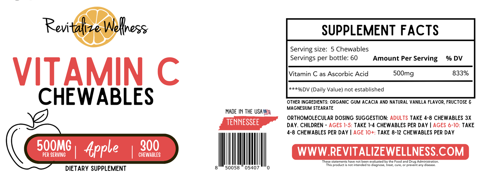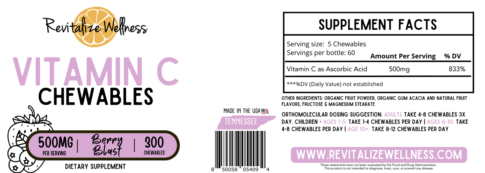 Each bottle contains 60 servings. Every 5 Chewables deliver 500mg of Vitamin C, providing an accessible and enjoyable daily dose.