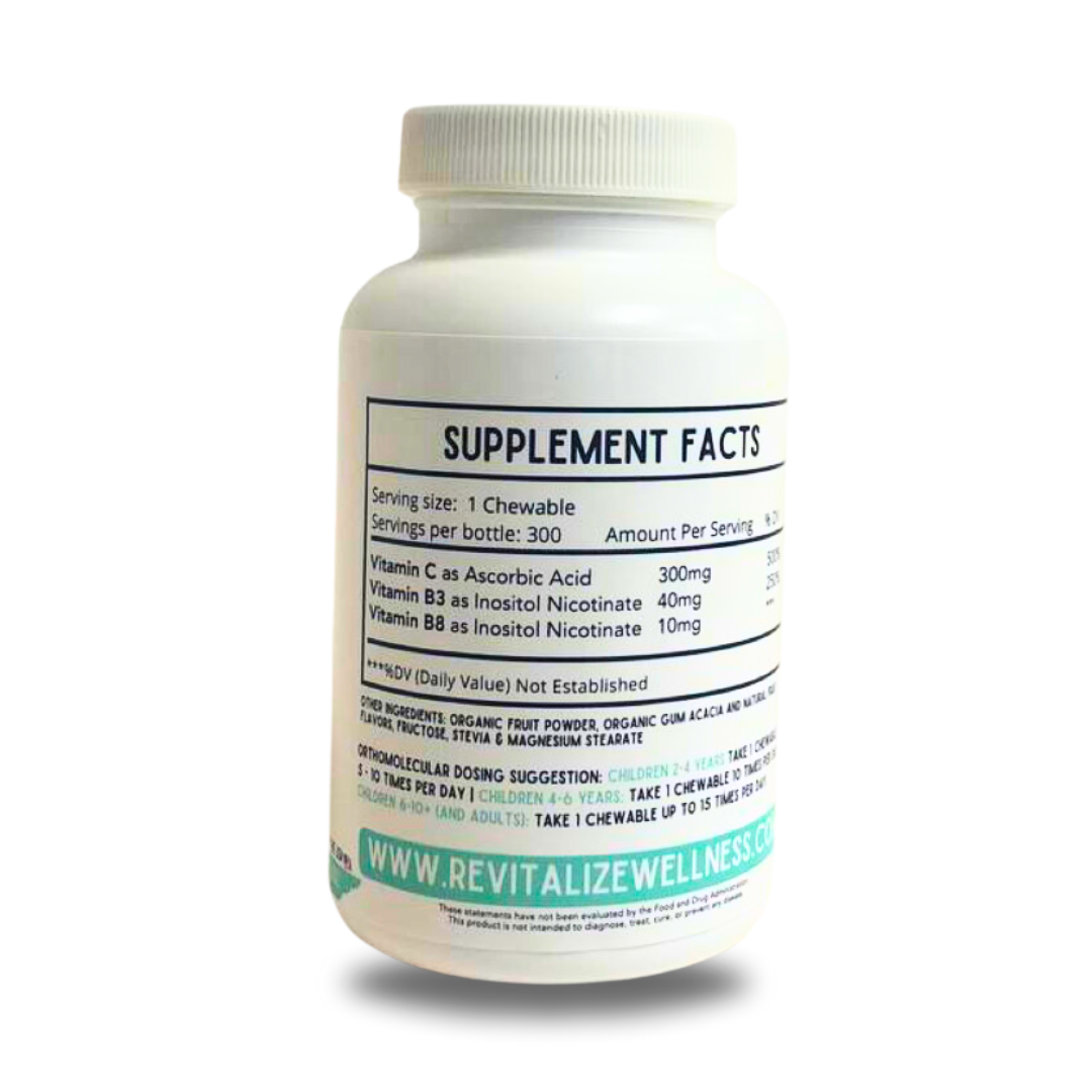 Each chewable delivers 300mg of Vitamin C and a 50mg B3/B8 combo.