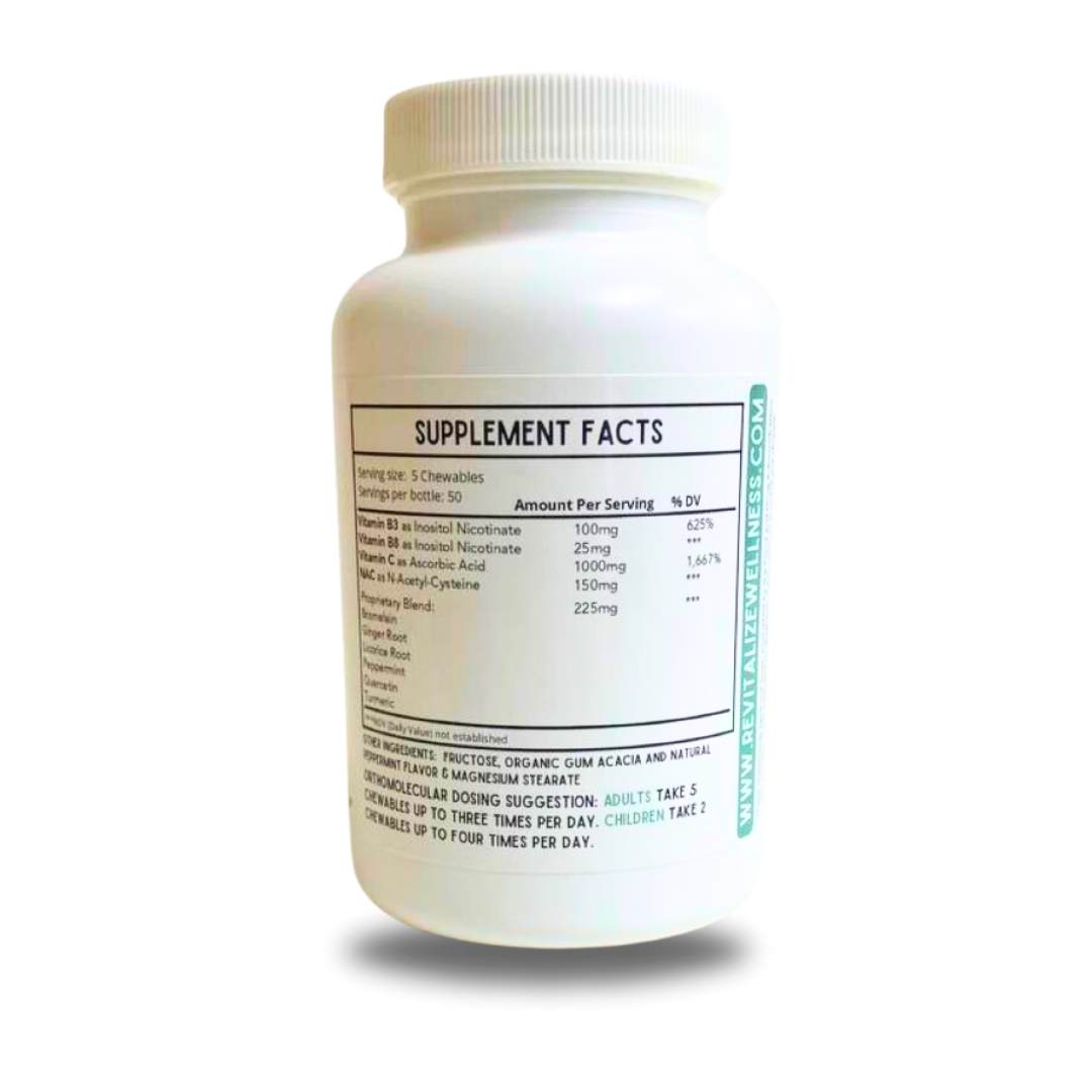 Back by popular demand, just in time for cold & flu season! Stay prepared and protect your respiratory system with our Orthomolecular Respiratory Defense Chewables. This scientifically-backed blend is formulated with an effective dose to help combat respiratory issues and support overall lung health —all with a refreshing peppermint flavor.